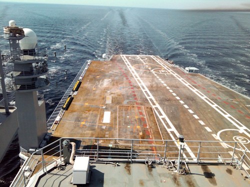 在這艘排水量達4.54萬噸的前蘇聯(lián)航母上,除了俄羅斯北方造船廠(該廠對這艘航母進行了改裝)的代表之外,還有印度海軍軍官。