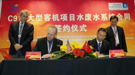 中國經(jīng)濟網(wǎng)訊 2012年7月9日范堡羅航展開幕當(dāng)天,中國商飛公司在航展現(xiàn)場就C919大型客機項目與美國蒙諾格公司(Monogram)簽署水/廢水系統(tǒng)采購合同。這表明C919大型客機項目工程發(fā)展階段工作正全面展開。