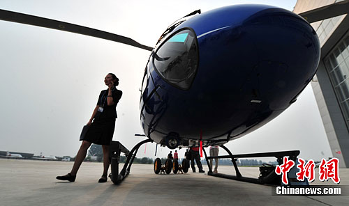 圖為能容六名人員的輕巧小松鼠直升機(jī)在展會(huì)上成為明星。中新社發(fā) 鄒憲 攝