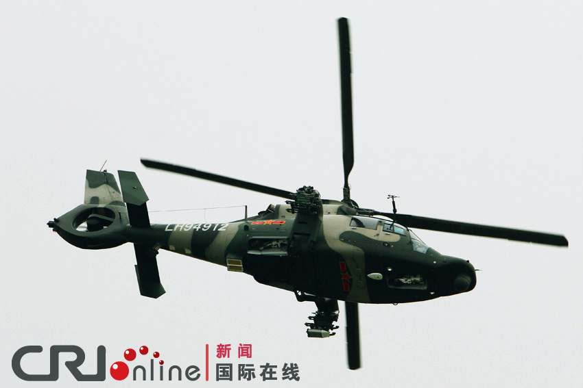 解放軍直-9WZ武裝直升機(jī)進(jìn)行飛行表演。戴爽 攝