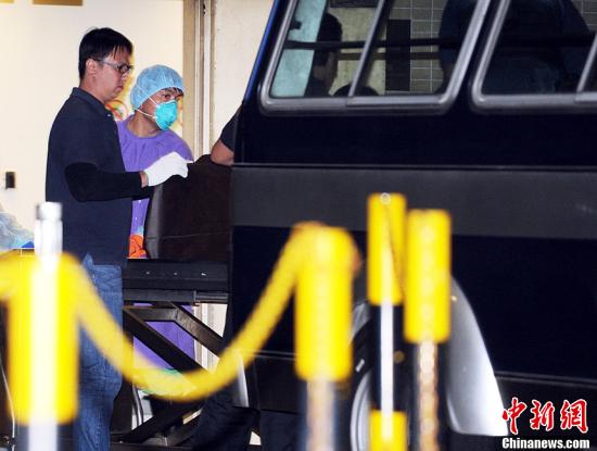 在埃及熱氣球事故中遇難的九名港人遺體,3月11日傍晚運返香港,再由靈車轉(zhuǎn)送葵涌公眾殮房。中新社發(fā) 譚達明 攝