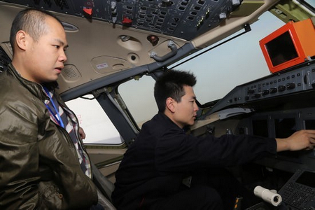 專業(yè)技術(shù)人員在102架機(jī)上進(jìn)行飛控上電自檢測(cè)(PBIT)。