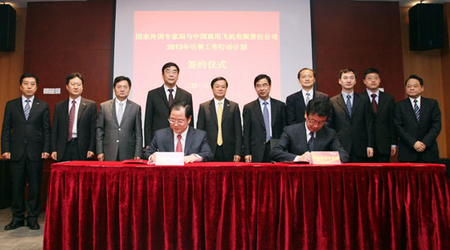 中國商飛與國家外國專家局簽署2013年引智工作行動計劃
