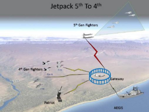 一旦試飛取得成功,美國空軍就將正式接管該項目,在此基礎(chǔ)上建立一個“在冊項目”并為其提供資金。美國空軍的一些官員們將該項目稱為“從五代機到四代機”(5th to 4th),意思是從五代機向四代機傳送數(shù)據(jù)。該項目的作戰(zhàn)概念要求將網(wǎng)關(guān)安裝在一架單獨的平臺上,并且該平臺可保持處在視線內(nèi)。這意味著網(wǎng)關(guān)平臺需要飛得足夠高——例如像“全球鷹”無人機的飛行高度——以便在敵方防區(qū)外與己方部隊保持通信;或者,該網(wǎng)關(guān)平臺應具有隱身能力。ACC在其演示文件中顯示的網(wǎng)關(guān)平臺是“全球鷹”,但漢米爾頓表示空軍并未就網(wǎng)關(guān)平臺的選擇做出最后決定。該項目的另一個主要目標是將所有需要的部件都裝在網(wǎng)關(guān)平臺上,而不需要為戰(zhàn)斗機加裝任何設(shè)備,因為,為F-22或F-35加裝任何天線而又不損害它們的隱身性能,是一件麻煩且費錢的事情。