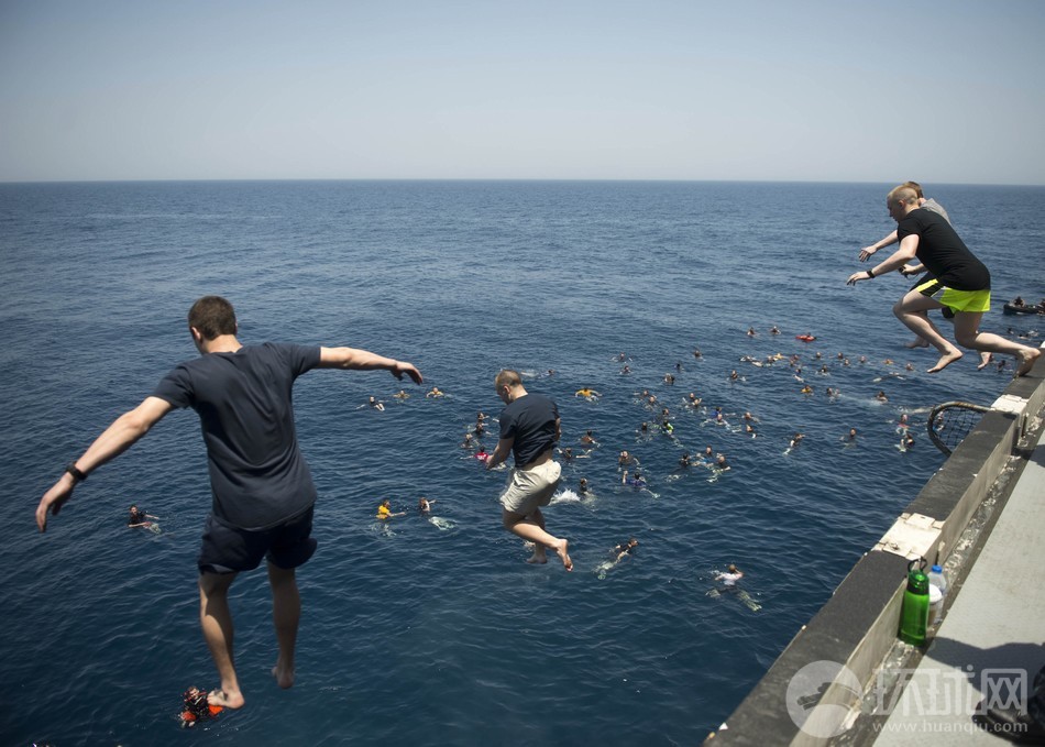 據(jù)美國(guó)海軍網(wǎng)報(bào)道,當(dāng)?shù)貢r(shí)間5月12日,正在阿拉伯海北部執(zhí)行部署任務(wù)的美國(guó)海軍尼米茲級(jí)航空母艦艾森豪威爾號(hào)(CVN 69)組織艦員進(jìn)行跳水游泳訓(xùn)練。這不僅僅是一項(xiàng)休閑娛樂(lè)活動(dòng),也是訓(xùn)練艦員在緊急情況下的跳水逃生能力。