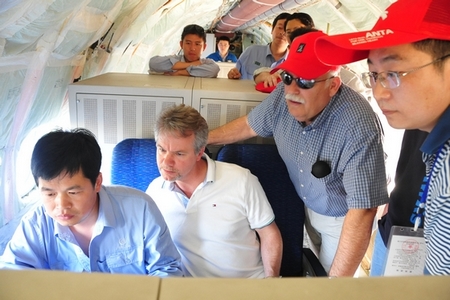 FAA、CAAC審查代表在飛機機艙內(nèi)審查試飛相關(guān)數(shù)據(jù)。