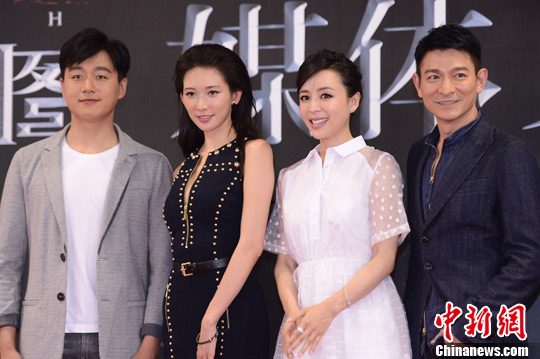 6月2日,超感官迷情特工大片《天機·富春山居圖》在北京舉行了電影全球首映禮。圖為四大主演。中新社發(fā) 李學仕 攝