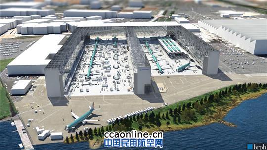 未來737總裝廠房效果圖,MAX將在現(xiàn)有的兩條生產(chǎn)線之間的“試驗生產(chǎn)線”上進(jìn)行制造
