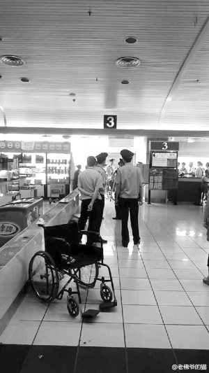 與此同時在微博上也有其他在現(xiàn)場的網(wǎng)友發(fā)微博稱:“一隊去南京的旅客,由于里面許多殘疾人帶拐杖,機(jī)組出于安全考慮不同意登機(jī),現(xiàn)場比較混亂。有沒有相關(guān)規(guī)定,安檢能過但不能登機(jī),問題出在哪兒呢? ”