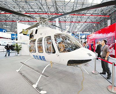 5日,觀眾參觀美國貝爾407直升機。