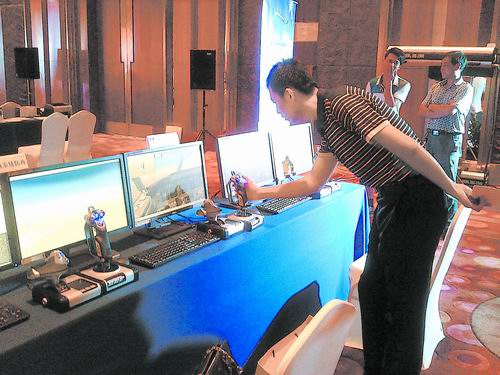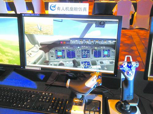 操控系統(tǒng)近年來(lái)取得長(zhǎng)足進(jìn)步。圖為觀眾體驗(yàn)無(wú)人機(jī)操控