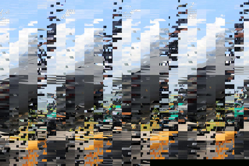工作人員為F-35型“閃電II”戰(zhàn)斗機(jī)做清潔工作。