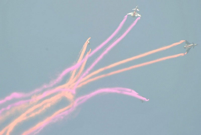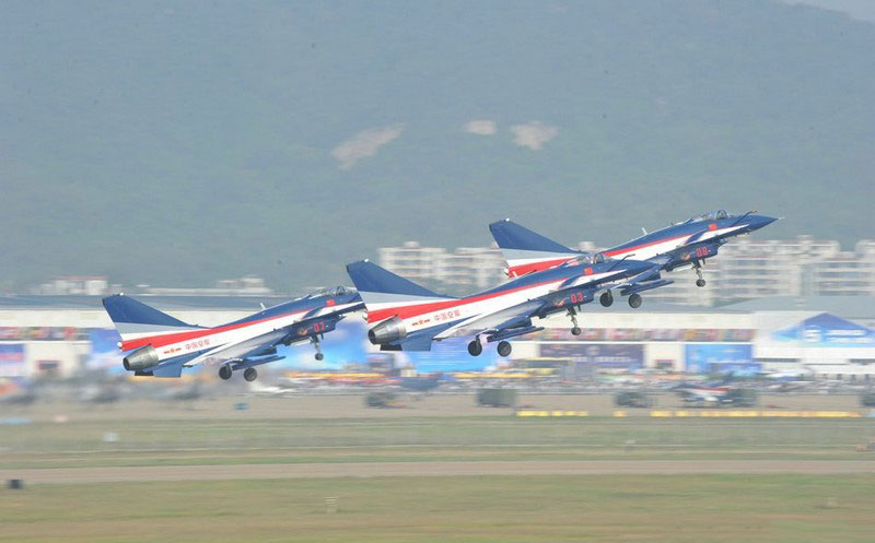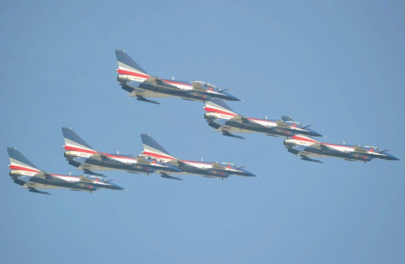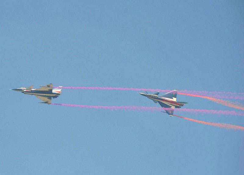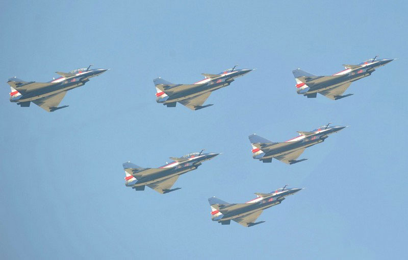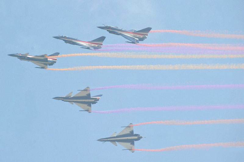 【環(huán)球網(wǎng)赴珠海航展特派報(bào)道組綜合報(bào)道】第九屆中國國際航空航天博覽會(huì)(珠海航展2012)將于11月13日-18日在廣東省珠海市金灣區(qū)三灶鎮(zhèn)隆重舉行。開展當(dāng)日,中國空軍八一飛行表演隊(duì)的6架殲-10戰(zhàn)機(jī)翱翔藍(lán)天,漫步云端。