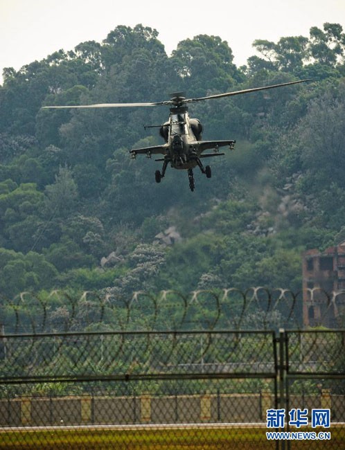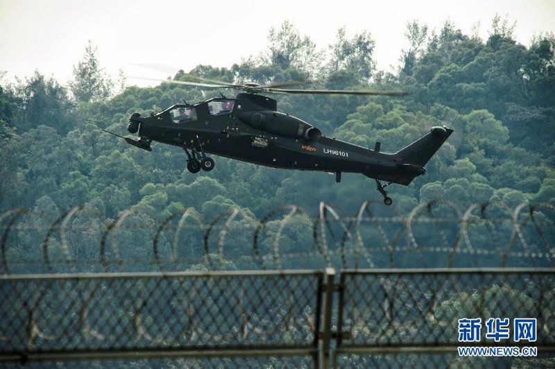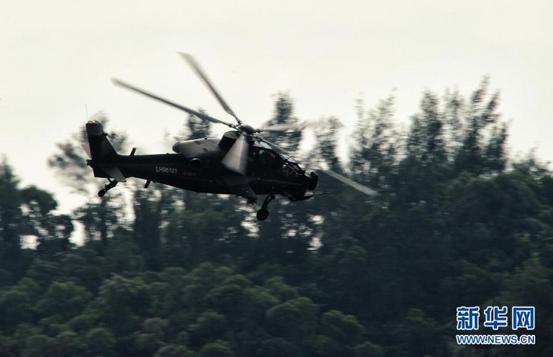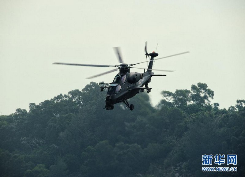 2012年11月11日,國產(chǎn)武直10武裝直升機(jī)在珠海三灶機(jī)場進(jìn)行飛行訓(xùn)練。當(dāng)日,我國自主研制生產(chǎn)的武直10武裝直升機(jī)在珠海三灶機(jī)場進(jìn)行了約20分鐘的適應(yīng)性飛行訓(xùn)練,做出倒飛、萊維斯曼機(jī)動、高速大角度俯沖、低空小半徑盤旋等動作,展現(xiàn)出其優(yōu)異性能,引來航展現(xiàn)場觀眾頻頻喝彩。楊光 攝 圖片來源:新華網(wǎng)