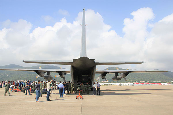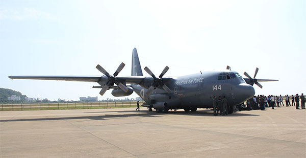 巴基斯坦空軍先遣機(jī)C-130運(yùn)輸機(jī)于11月9日中午抵達(dá)珠海航展現(xiàn)場。據(jù)悉,今天下午巴基斯坦空軍梟龍戰(zhàn)斗機(jī)也將抵達(dá)珠海。