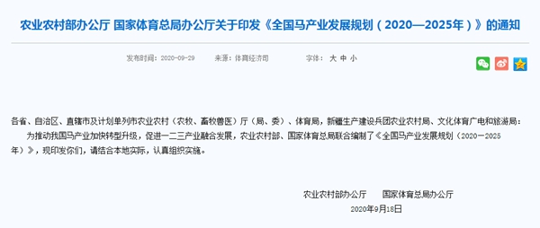 全國馬產(chǎn)業(yè)發(fā)展規(guī)劃(2020—2025年)