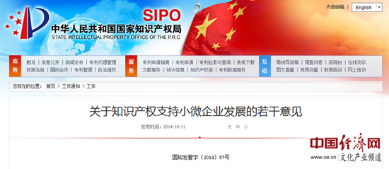 中國(guó)經(jīng)濟(jì)網(wǎng)北京10月14日訊 中國(guó)經(jīng)濟(jì)網(wǎng)文化產(chǎn)業(yè)頻道記者從國(guó)家知識(shí)產(chǎn)權(quán)局網(wǎng)站獲悉,國(guó)家知識(shí)產(chǎn)權(quán)局近日印發(fā)了《關(guān)于知識(shí)產(chǎn)權(quán)支持小微企業(yè)發(fā)展的若干意見(jiàn)》(以下簡(jiǎn)稱(chēng)《意見(jiàn)》)。據(jù)中國(guó)經(jīng)濟(jì)網(wǎng)文化產(chǎn)業(yè)頻道記者了解,該《意見(jiàn)》從扶持小微企業(yè)創(chuàng)新發(fā)展、完善小微企業(yè)知識(shí)產(chǎn)權(quán)服務(wù)、提高小微企業(yè)知識(shí)產(chǎn)權(quán)運(yùn)用能力、優(yōu)化小微企業(yè)知識(shí)產(chǎn)權(quán)發(fā)展環(huán)境4個(gè)方面,提出了支持小微企業(yè)創(chuàng)新成果在國(guó)內(nèi)外及時(shí)獲權(quán)、完善小微企業(yè)專(zhuān)利資助政策、扶持知識(shí)產(chǎn)權(quán)服務(wù)業(yè)小微企業(yè)等15條具體措施。