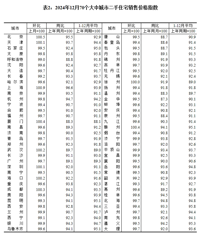 中國(guó)經(jīng)濟(jì)網(wǎng)北京1月17日(記者 李方) 17日,國(guó)家統(tǒng)計(jì)局發(fā)布2024年12月份70個(gè)大中城市商品住宅銷售價(jià)格變動(dòng)情況統(tǒng)計(jì)數(shù)據(jù)。數(shù)據(jù)顯示,2024年12月份,70個(gè)大中城市中,一線城市商品住宅銷售價(jià)格環(huán)比上漲,二三線城市環(huán)比總體降幅收窄;一二三線城市同比降幅均繼續(xù)收窄。