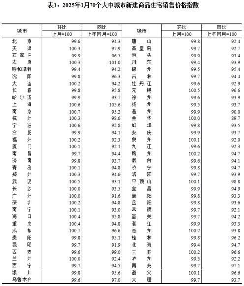 1月份,70個(gè)大中城市中,新建商品住宅銷售價(jià)格環(huán)比上漲城市有24個(gè),比上月增加1個(gè);二手住宅環(huán)比上漲城市有7個(gè),比上月減少2個(gè)。