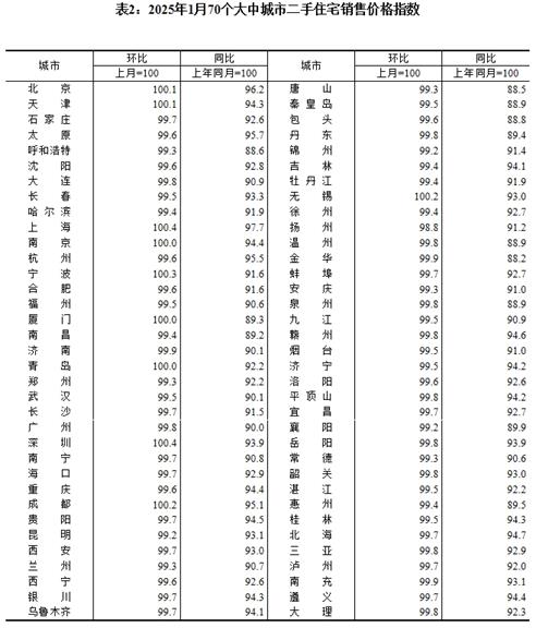 1月份,二線城市新建商品住宅銷售價(jià)格環(huán)比由上月持平轉(zhuǎn)為上漲0.1%,為2023年6月以來首次上漲;二手住宅環(huán)比下降0.3%,降幅與上月相同。三線城市新建商品住宅和二手住宅銷售價(jià)格環(huán)比分別下降0.2%和0.4%,降幅均與上月相同。
