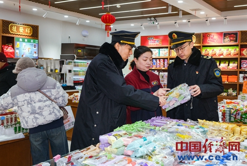 疾控中心工作人員在天津西站內(nèi)超市對售賣食品進(jìn)行監(jiān)督查看。楊寶森/攝