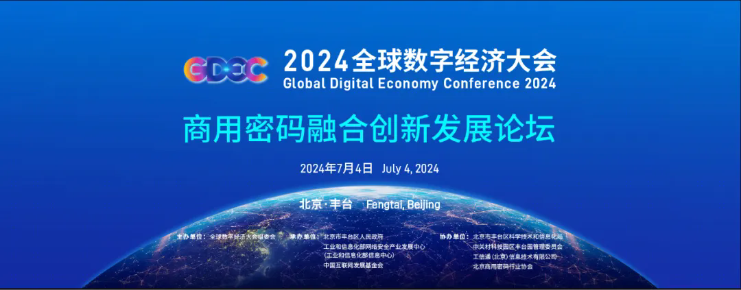 7月4日,2024全球數(shù)字經(jīng)濟大會商用密碼融合創(chuàng)新發(fā)展論壇即將啟幕!誠邀產(chǎn)業(yè)各界伙伴共聚豐臺,攜手并進(jìn),共繪商密新篇章!