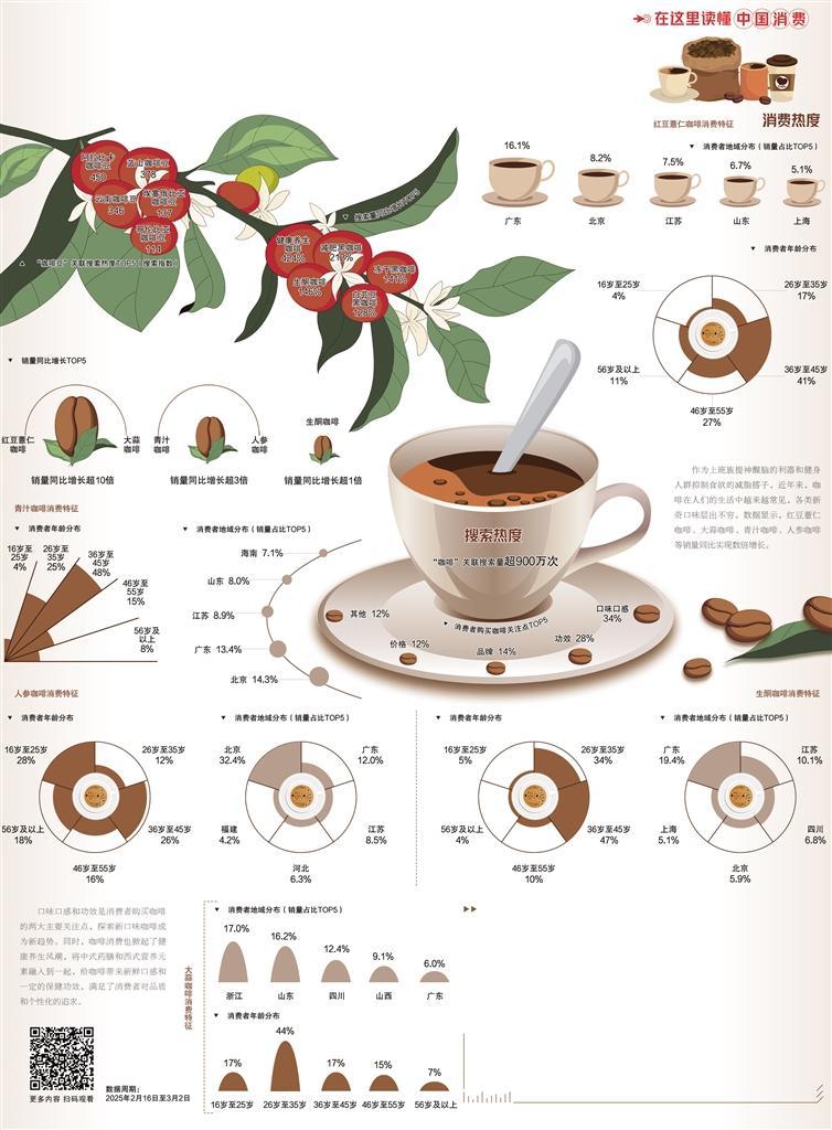 工作時沖一杯美式提神、午飯后來一杯拿鐵解膩、周末約好友“打卡”網(wǎng)紅咖啡店……近年來,我國咖啡消費穩(wěn)步提升,市場空間加速擴容,咖啡正融入消費者的日常生活。
