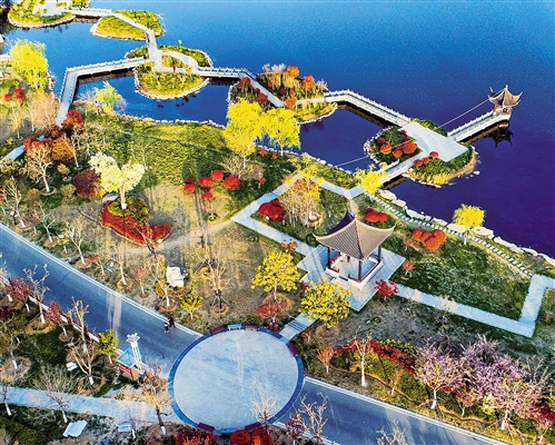 4月7日拍攝的江蘇省連云港市東??h水晶公園。近年來,東??h堅(jiān)持走“生態(tài)優(yōu)先、綠色發(fā)展”之路,通過實(shí)施生態(tài)修復(fù),河道、村莊綜合整治等多項(xiàng)管理機(jī)制,為當(dāng)?shù)卮蛟炝恕氨趟{(lán)天、岸綠花香”的良好生態(tài)。