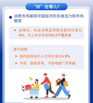 近日,今年前兩月經(jīng)濟(jì)數(shù)據(jù)發(fā)布,國家統(tǒng)計局新聞發(fā)言人概括為“發(fā)展態(tài)勢向新向好”。這意味著什么?