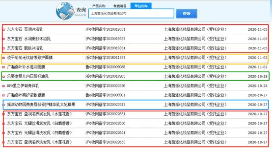 記者查詢(xún)國(guó)產(chǎn)非特殊用途化妝品備案平臺(tái)得知,上海茵派化妝品有限公司是紅地球明星草本精華卸妝水、俊平永久花純露、稚優(yōu)泉嘭潤(rùn)保濕清清水、樂(lè)嬰堂嬰兒山茶油霜等近500款產(chǎn)品(包含已注銷(xiāo))的生產(chǎn)企業(yè)。