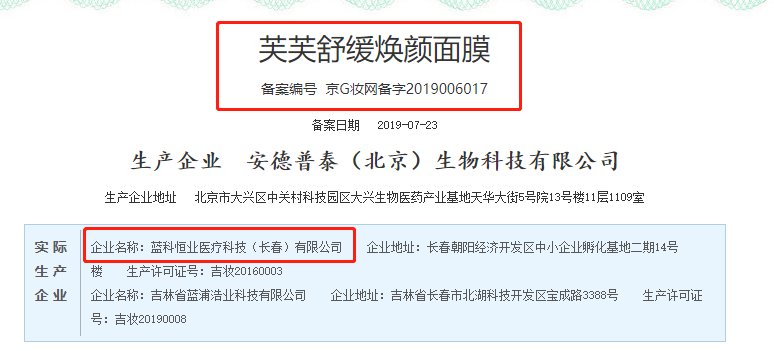 記者了解到,藍科恒業(yè)醫(yī)療科技(長春)有限公司是芙芙舒緩煥顏面膜、芙芙深澈潤顏面膜、芙芙抑痘凈顏面膜、芙芙清痘復(fù)顏面膜等產(chǎn)品的生產(chǎn)企業(yè)。其中芙芙舒緩煥顏面膜在網(wǎng)購平臺上芙芙官方旗艦店總銷售量達54萬。