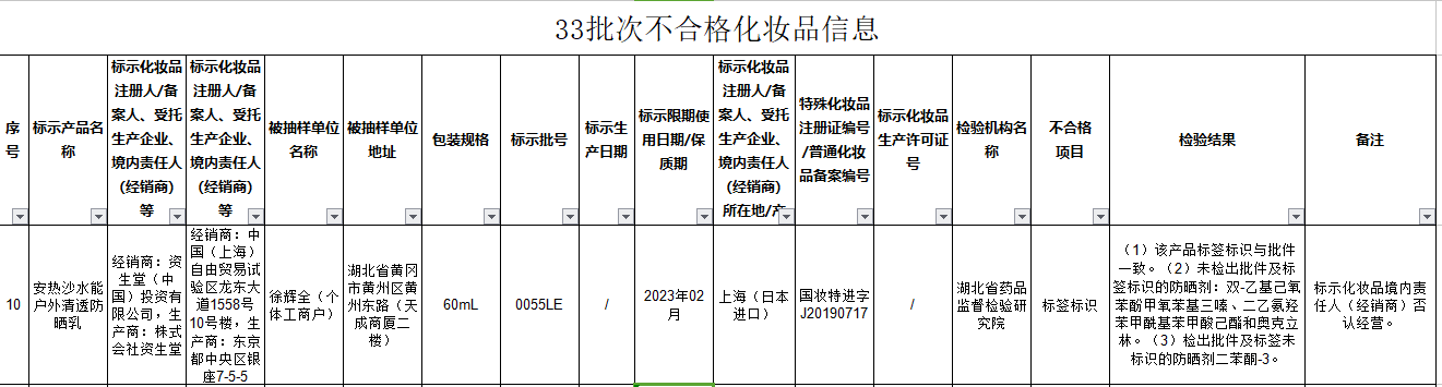 記者了解到,此次抽檢共有14批次不合格產(chǎn)品標(biāo)示的化妝品注冊(cè)人、備案人、受托生產(chǎn)企業(yè)、境內(nèi)責(zé)任人(經(jīng)銷(xiāo)商)否認(rèn)實(shí)際生產(chǎn)或者進(jìn)口不合格產(chǎn)品,包括資生堂(中國(guó))投資有限公司。