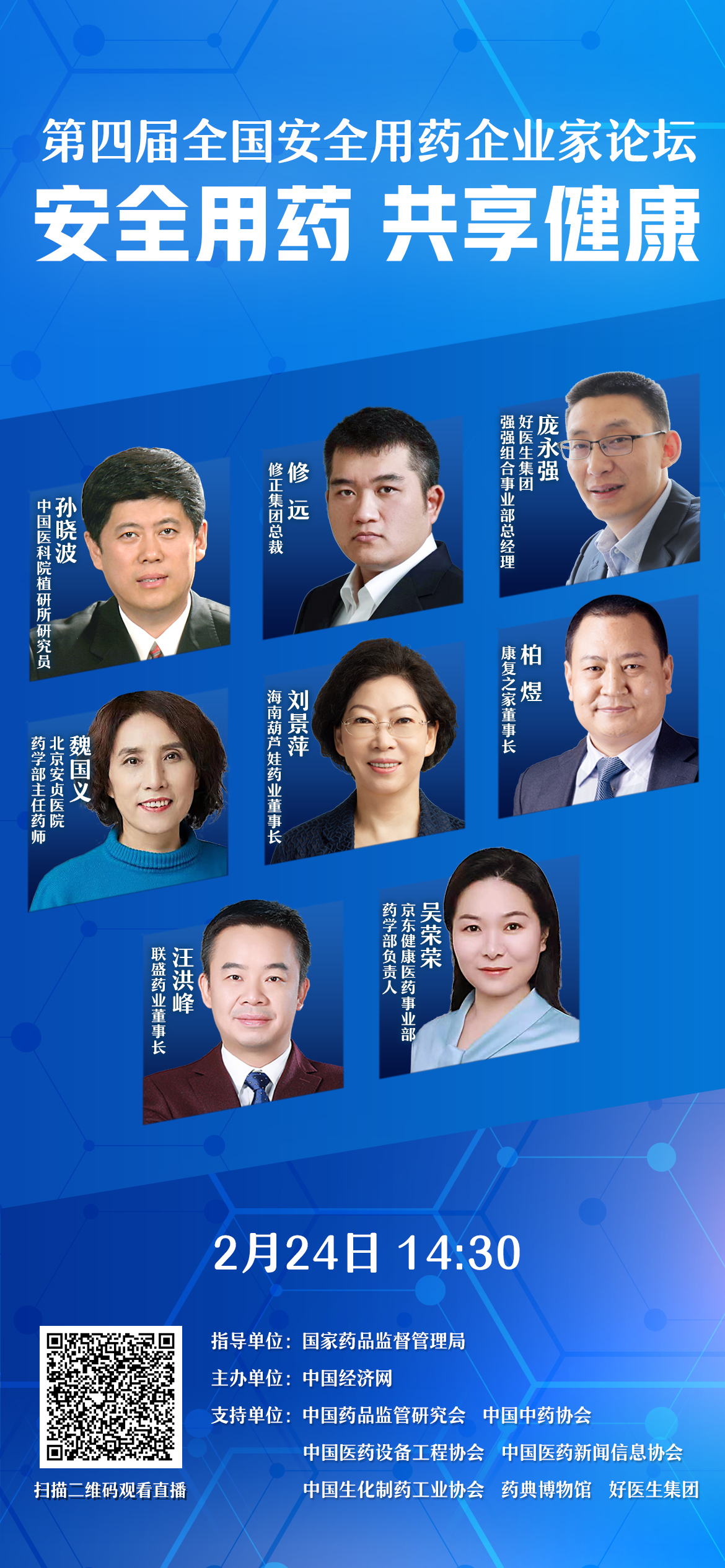中國經(jīng)濟網(wǎng)2月23日訊(記者 郭文培)由國家藥品監(jiān)督管理局指導,中國經(jīng)濟網(wǎng)主辦的“第四屆全國安全用藥企業(yè)家論壇”將于2月24日在北京召開。此次論壇是“全國安全用藥月”系列活動的組成部分,論壇主題為“安全用藥共享健康”。