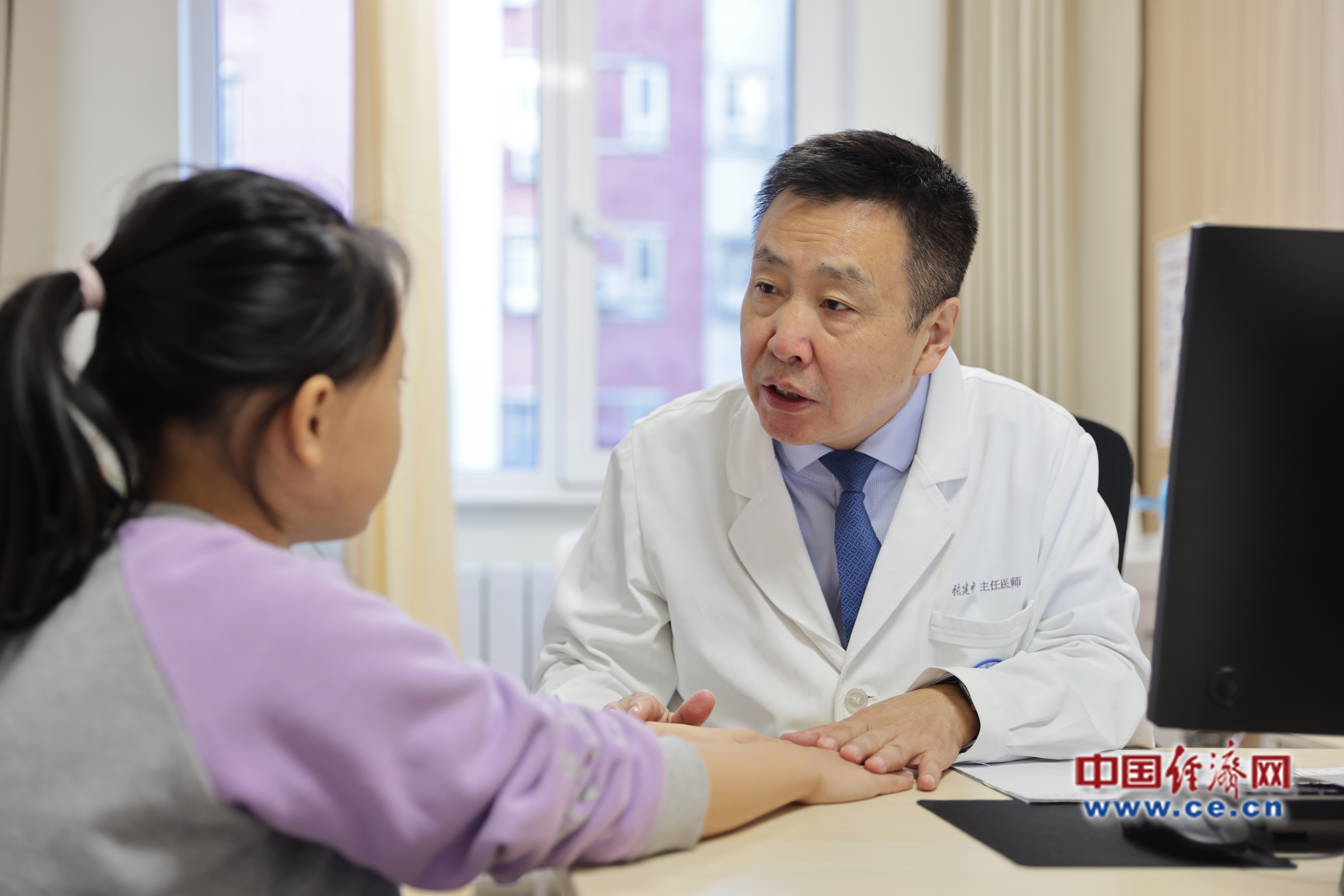 圖為北京大學(xué)人民醫(yī)院皮膚科張建中教授為患者開出首張?zhí)幏?中國經(jīng)濟網(wǎng)裴小閣攝
