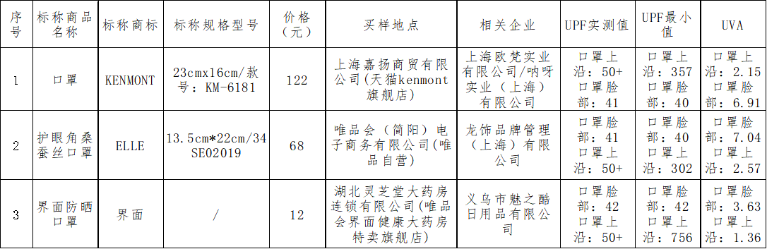 夏日炎炎,做好防曬至關重要,佩戴防曬又舒適的防曬口罩(面罩)成為很多消費者的首選。目前市場上涌現出眾多品牌和款式的防曬口罩及面罩,其功能、價格等方面存在較大差異,7月9日,上海市消費者權益保護委員會發(fā)布防曬口罩(面罩)比較試驗結果:KENMONT、HTBT等4款樣品防曬性能不符合標準要求;KENMONT、ELLE等3款樣品實測UPF值與明示或宣稱不符。