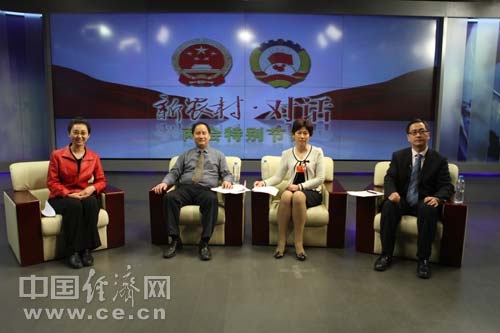 第十一屆全國人大代表、山東臨沭縣農(nóng)業(yè)局農(nóng)經(jīng)中心主任劉建文,農(nóng)業(yè)部全國農(nóng)業(yè)技術(shù)推廣服務(wù)中心土肥處處長李榮,國家緩控釋肥工程技術(shù)研究中心副主任、山東金正大公司副總經(jīng)理陳宏坤做客中國經(jīng)濟網(wǎng)。(王耀峰 攝)