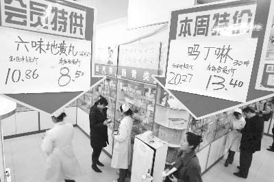 2月26日,利君堂大藥房北京安定門(mén)店內(nèi),市民正在選購(gòu)特價(jià)藥,藥店里貼出了與社區(qū)醫(yī)院零差價(jià)藥品的價(jià)格對(duì)比。衛(wèi)生體制改革依然是本屆兩會(huì)的關(guān)注焦點(diǎn)之一。本報(bào)記者薛珺攝