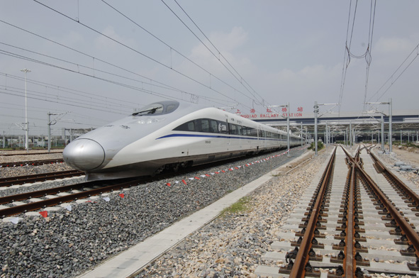 9月28日上午,在滬杭鐵路試運行期間,由中國南車研制的CRH380A商用動車組創(chuàng)造了416.6公里的世界鐵路最高時速。