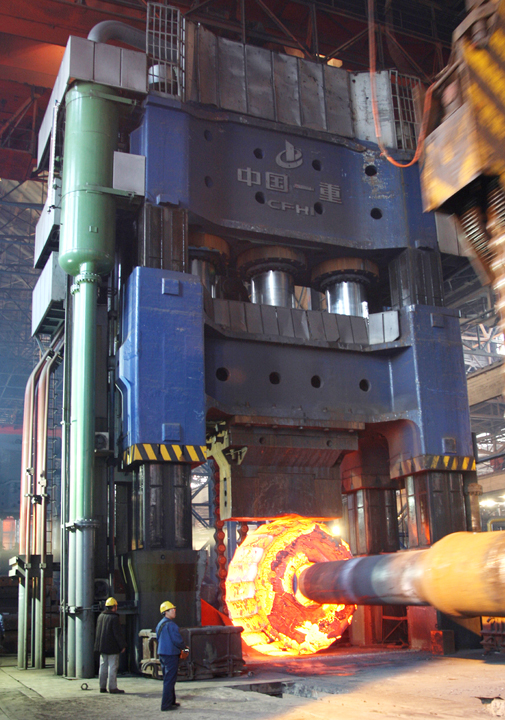在火電、水電等一些大型鑄鍛件制造方面,經(jīng)過(guò)不懈努力,中國(guó)一重已經(jīng)成為國(guó)內(nèi)生產(chǎn)300~1000MW火電機(jī)組大型鍛件能力最強(qiáng)的企業(yè),并具備制造700MW水力發(fā)電站機(jī)組葉片、上冠、下環(huán)、水輪機(jī)大軸等鑄鍛件的能力。