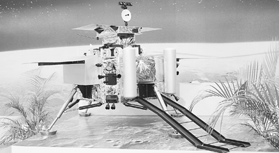上部小車為月面巡視器模型,下為月面軟著陸探測器模型。我國探月工程二期將研制和發(fā)射月面軟著陸探測器和巡視器,開展月面探測活動(dòng),實(shí)現(xiàn)落月目標(biāo),也就是嫦娥三號(hào)任務(wù)。